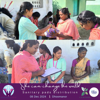 On December 8th, Thozhargalin Karam extended its efforts in promoting sustainable living by distributing organic sanitary napkins in Anaikatti villages, including Periya Jambukandi, Chinna Jambukandi, and remote interior areas like Doomanor, Sendhakadu, and Sembakarai. This initiative reflects our commitment to improving menstrual hygiene while encouraging the adoption of eco-friendly practices.